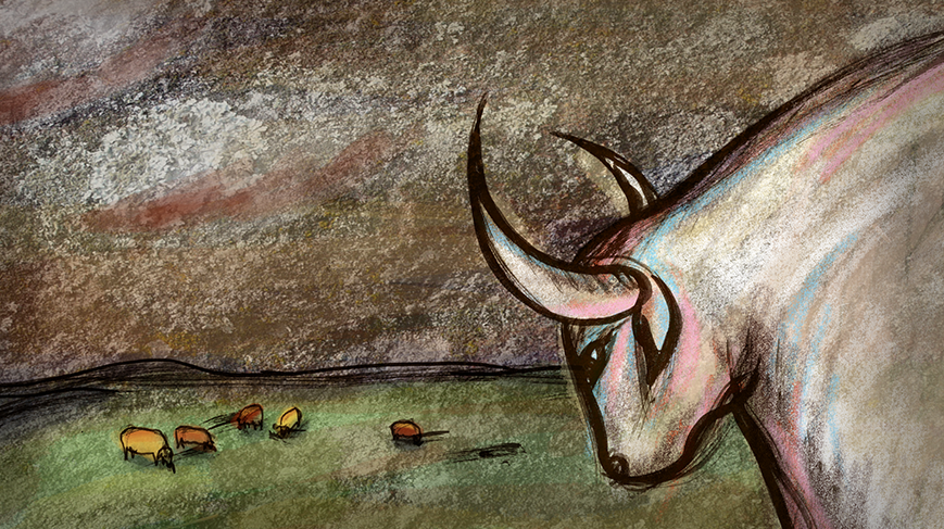 Uma manada de vacas, liderada por uma enorme Vaca Branca, povoa a grande planície. Sem fronteiras, estas vivem a sua existência pacifica ora por aqui , ora por ali. Porém essa paz é subitamente ensombrada. El Manhoso, um cowboy feito de arame farpado, quer aprisioná-las num pedaço demarcado de terra para assim subjugá-las e dominar a região.